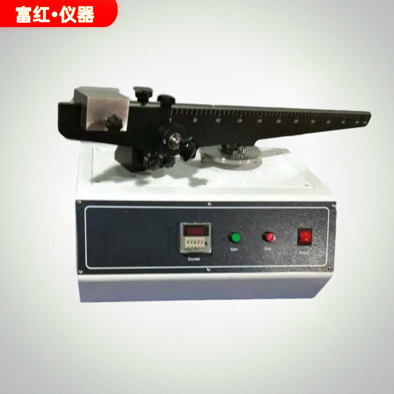 將試樣放置于厚度控制裝置凹槽內(nèi),調(diào)節(jié)螺母位置。將試樣安裝在可旋轉(zhuǎn)圓形平臺上,并用壓塊及螺母固定。將刮擦頭安裝與秤桿中部對應(yīng)凹槽內(nèi)。旋轉(zhuǎn)平衡桿,使刮擦頭頭部與試樣剛好接觸。啟動(dòng)儀器,圓盤運(yùn)動(dòng),刮擦頭在試樣表面留下刮痕。