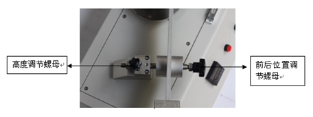 平衡桿調(diào)節(jié)部件:本部分包括厚度控制裝置,高度調(diào)節(jié)螺母,前后位置調(diào)節(jié)螺母,平衡桿組成。平衡桿的高度由試樣的厚度決定。試驗(yàn)前將試樣插入厚度控制裝置凹槽內(nèi),通過調(diào)節(jié)高度調(diào)節(jié)螺母,使試樣恰好卡在凹槽內(nèi)。當(dāng)試樣安裝于圓形載樣平臺,摩擦頭裝入平衡桿后,其頭部頂住試樣,此時(shí),平衡桿基本保持平行,只需微調(diào)即可(放置水平泡看是否水平)。