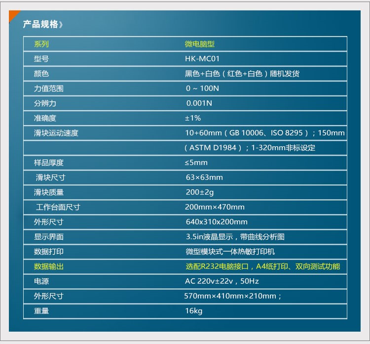 GB 10006, GB/T 17200,GB/T 22895,ISO 8295,ASTM D1894,TAPPI T816,GB/T 2792等各項標準