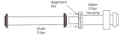 將過(guò)濾器上部殼體接到外濾器上。務(wù)必使定位銷(xiāo)和孔相配合。用手上緊聯(lián)管節(jié) 3