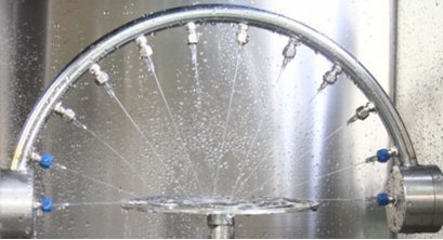 底部設(shè)置一水箱在通過(guò)右側(cè)控制箱內(nèi)部的不銹鋼水泵抽水并加壓后再送到側(cè)面噴水管裝置的噴頭處,噴嘴恒向噴水到轉(zhuǎn)盤上面的樣品上,再散落到水箱內(nèi)部,從而形成水循環(huán)系統(tǒng)。水泵出口設(shè)計(jì)流量計(jì)、壓力表、電子閥等控制元件。