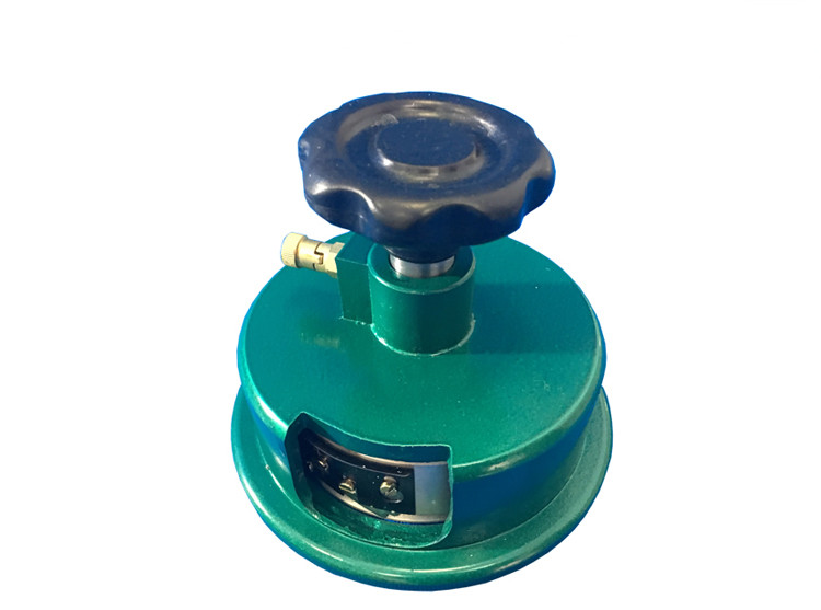 將待裁織物平鋪在橡膠墊上,將圓盤取樣器放在織物上,拉出取樣器上的鎖緊裝置,旋轉(zhuǎn)約90度,一手扶住外罩,一手握住波紋手輪,并施加一定壓力,然后順時(shí)針旋轉(zhuǎn)波紋手輪(轉(zhuǎn)角大于90度),即可將圓試樣裁取。取樣器使用后即鎖緊裝置,旋轉(zhuǎn)至原位,使刀片不能外露,以免傷手和其他物品。