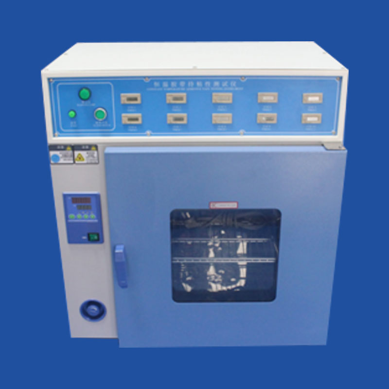 5.水平放置儀器,依次將電源開關(guān)、加熱開關(guān)、風(fēng)扇開關(guān)打開,按下計時器上的凸起部位,將時間清零。儀器自動按照預(yù)先設(shè)定的溫度自動開機(jī),直到試驗箱內(nèi)溫度恒定到設(shè)定值;