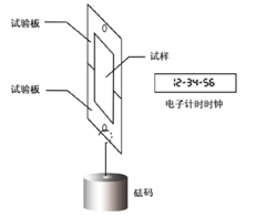 4.試樣在板上粘貼后,應(yīng)在溫度 23℃±2℃,相對濕度 65%±5%的條件下放置20 min。然后將試驗板垂直固定在儀器的試驗架上,輕輕用銷子連接加載板和砝碼。