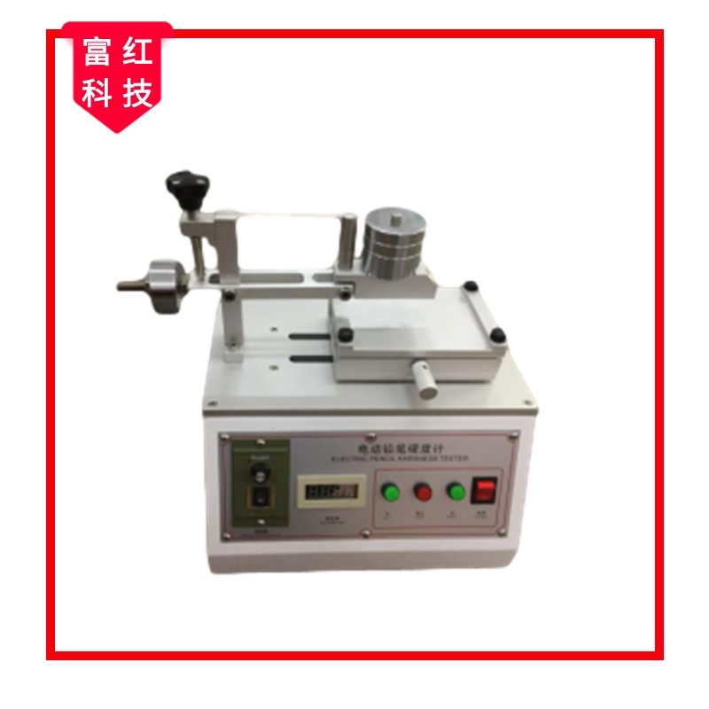 以硬度鉛筆刮搔涂膜表面測(cè)試涂膜層之表面硬度,硬度鉛筆以45°角固定,使前端筆心與涂膜層表面接觸,并加以適當(dāng)荷重,依相對(duì)速度(JIS規(guī)范0.5mm/秒)移動(dòng)試驗(yàn)平臺(tái)使涂膜層表面移動(dòng)經(jīng)過筆心,涂膜層不會(huì)造成損害(刮痕)之zui軟鉛筆等級(jí)即可視為涂膜層硬度