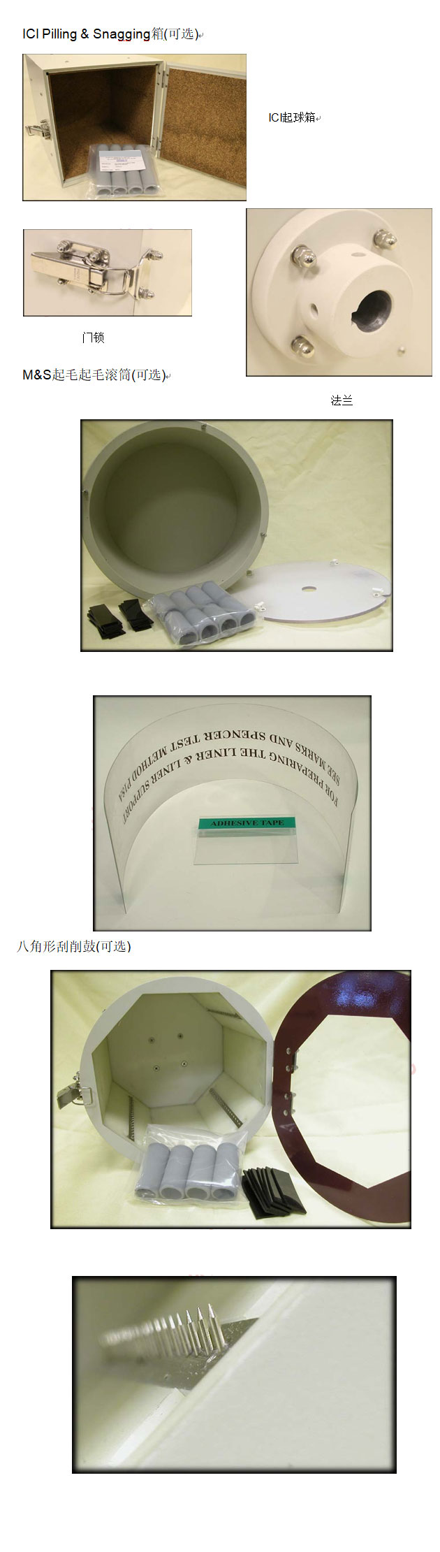 2. 可采用不同的起毛/起毛箱及檢測附件執(zhí)行各項標準,使用時應參照檢測標準