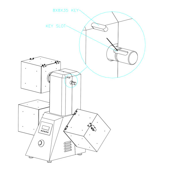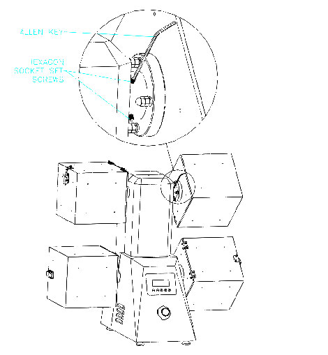 六角套緊螺釘和鑰匙由主機發(fā)貨。用于將起球箱/滾筒固定在機器的轉軸上。安裝起球/起球盒或起球鼓(詳見標準)時,用戶應參照測試標準,現(xiàn)場安裝如下。