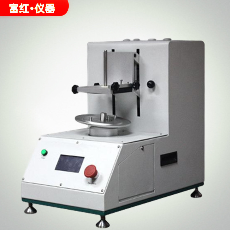 圓形的試樣安裝在旋轉(zhuǎn)測(cè)試頭上,試樣通過使用旋轉(zhuǎn)磨損的方式沿順時(shí)針和逆時(shí)針方向在的速度、壓力和旋轉(zhuǎn)次數(shù)下與摩擦物(砂紙)進(jìn)行摩擦。摩擦物與試樣保持線性接觸,因此能產(chǎn)生一個(gè)正切線方向上的摩擦效果。每摩擦100次(可設(shè)定)更改旋轉(zhuǎn)方向。通過質(zhì)量損失和破洞的產(chǎn)生來評(píng)價(jià)測(cè)試結(jié)果。